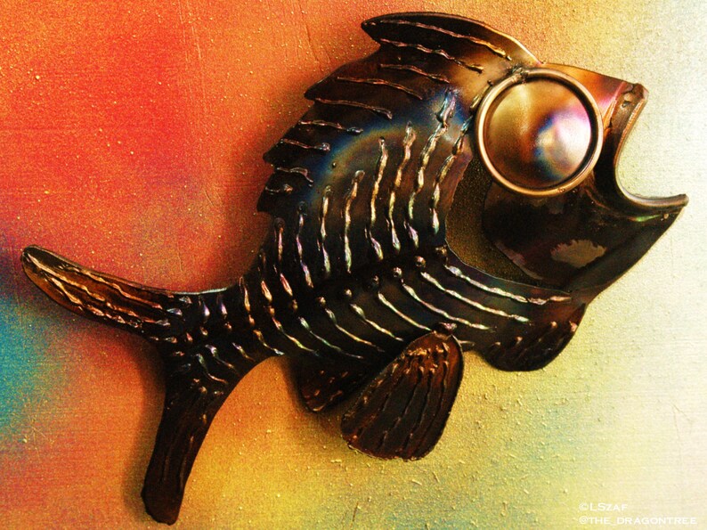 Stainless steel art by armando hevia. Fish made with wood, metal,glass, handmade by unikos arts give your wall a upcycled beach steampunk theme with one of a kind original distressed fish wall art sculpture. Purchase now for only $45.00. Hundreds to choose from with free shipping and discount prices!