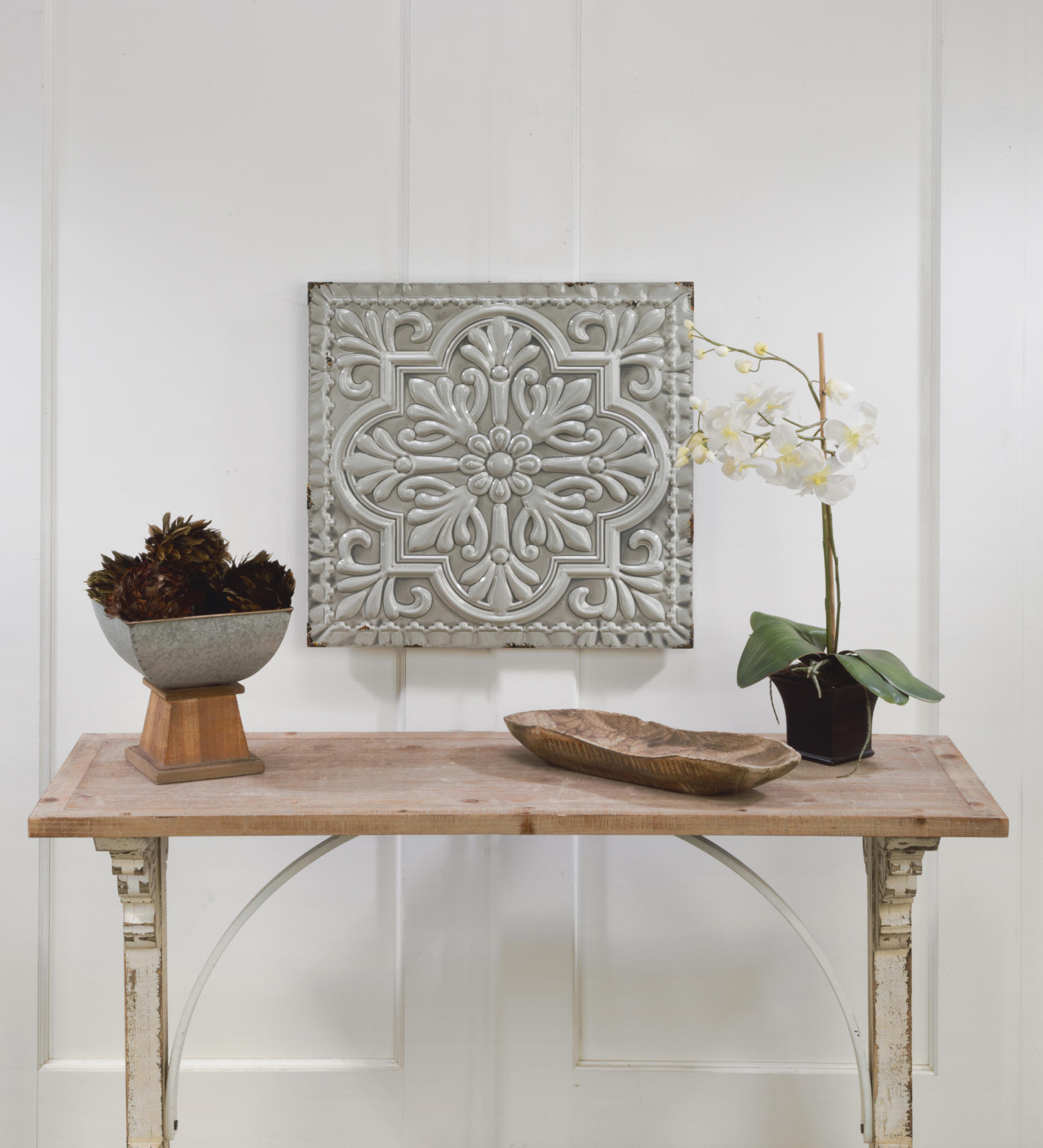 Embellishments, pearl effects, and painted and distressed metal gives this collection. Big tiles make for big metal tile art. Unique hand crafted products for residential, commercial, and indoor / outdoor enhancements. Artepera metal wall art products by high quality steel material.